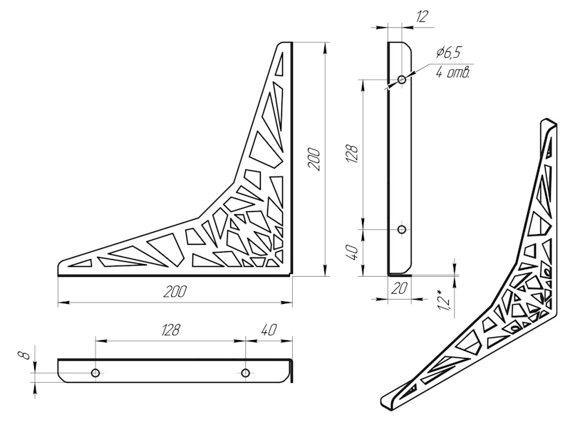 Кронштейн Ажур функциональное и декоративное крепление для полки.