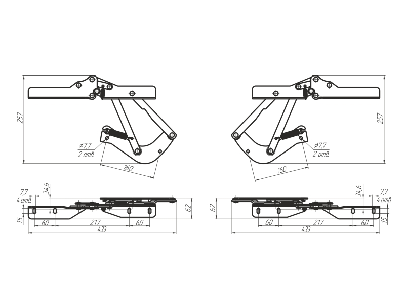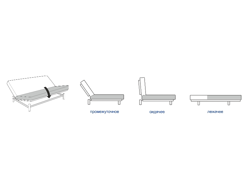 Комплект механизмов предназначен для дивана, который может принимать три положения: полулежа, лежа, сидя.