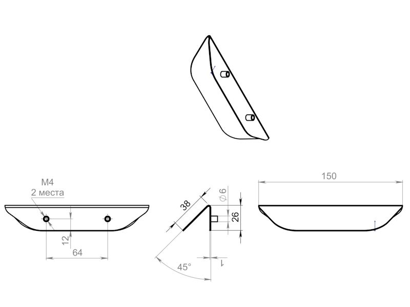 Ручка накладная трапеция 64(150) графит