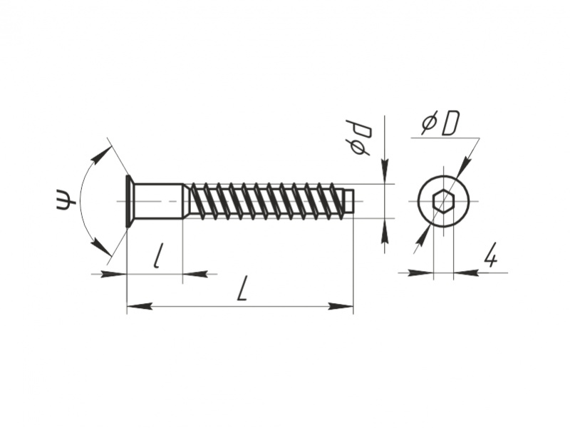 Винт-конфирмат ф7,0х85, потайная головка, внутренний шестигранник