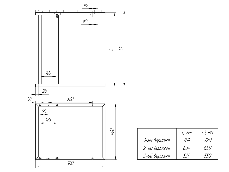 высота - L - 704 мм., L1 - 720 мм.