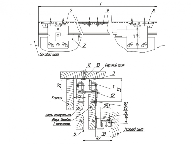 Механизм раздвижных дверей 2в на 3 двери