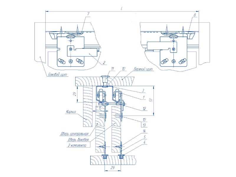 Механизм раздвижных дверей 2в на 3 двери