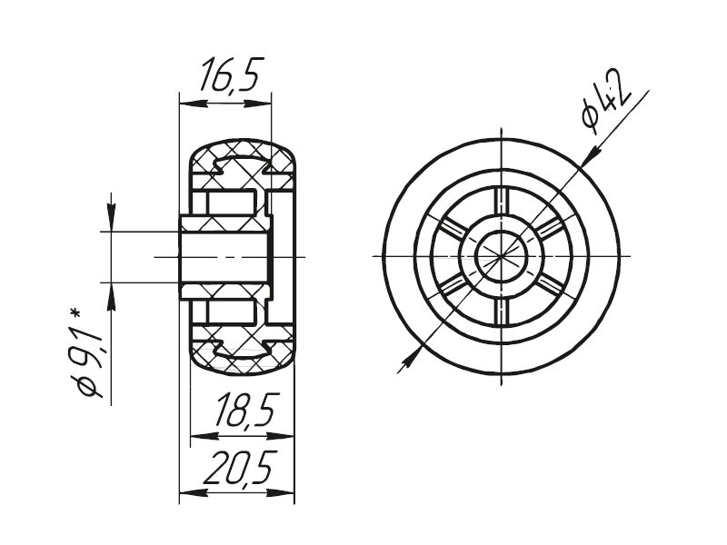 Размеры колеса - 42х20,5 мм