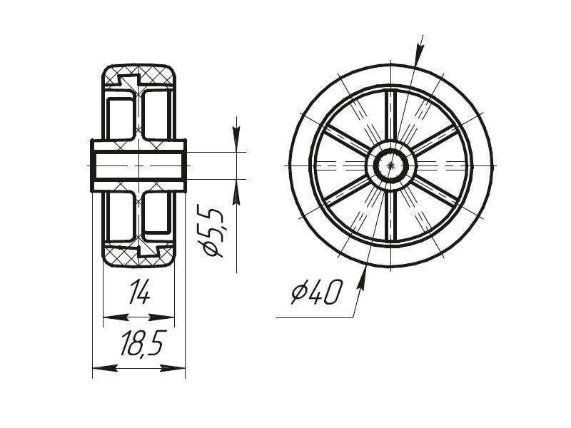 Размеры колеса - 40х18,5 мм