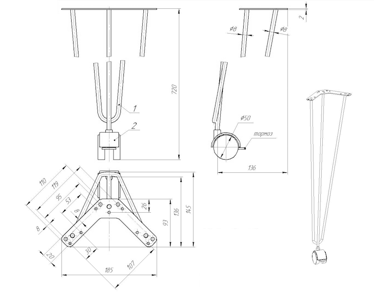 LOFT Опора с колесом Н-720 черная