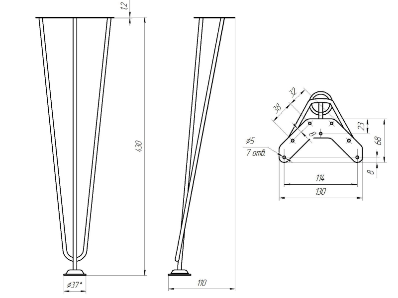 LOFT Опора стола в сборе Н-715 нерегулируемая черная