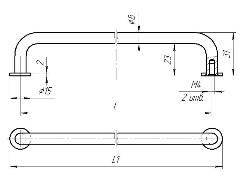 LOFT Ручка-скоба 256 RAL 9006, металлик