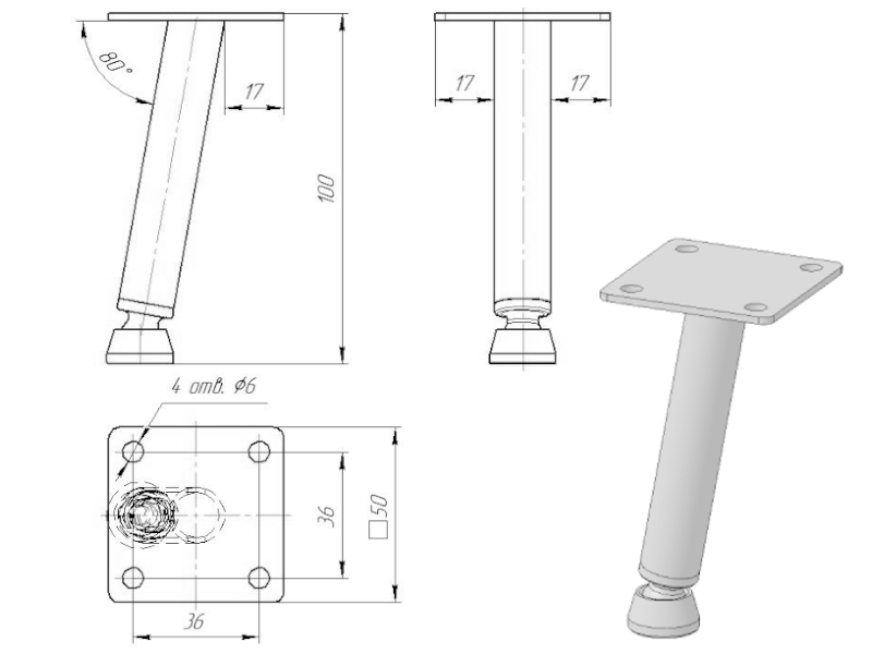 Опора подойдет для корпусной и мягкой мебели малых форм.