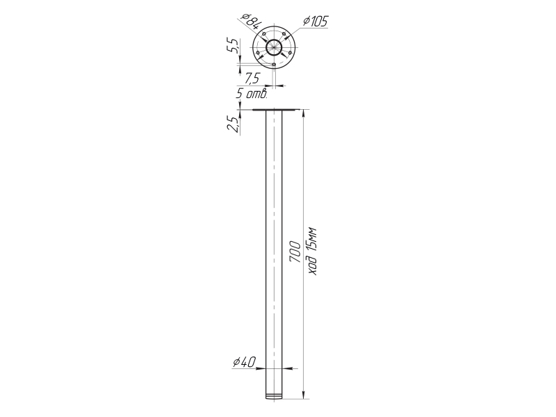 Опора ф 40х700 со съемным фланцем в сборе черная (4*16)