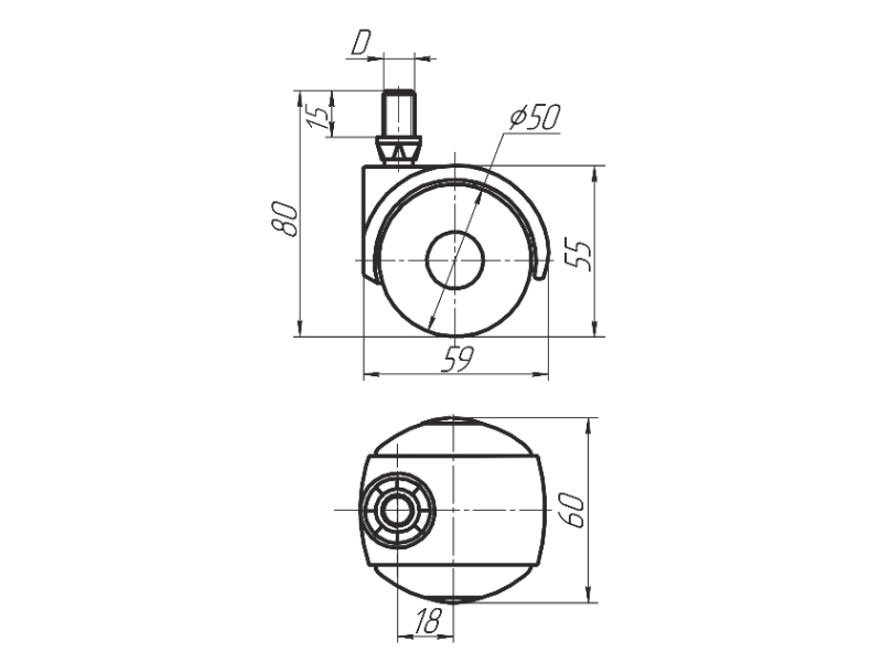 Опора колесная 8.1в. с резьбовым штырем М10