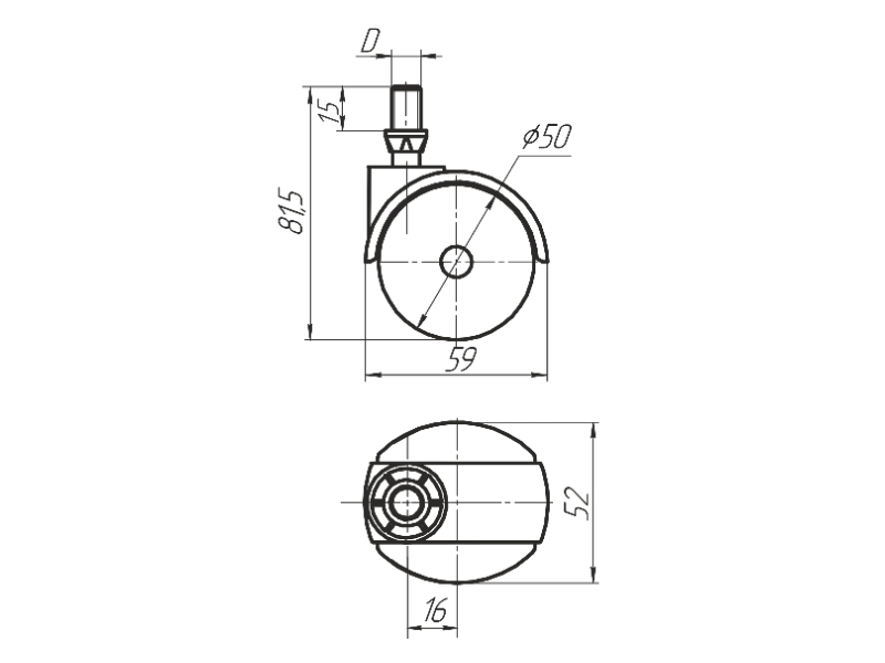 Опора колесная 9 в. с резьбовым штырем