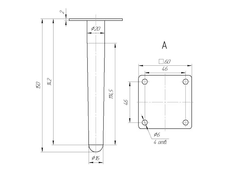 Опора конусная ф20х150 наклонная черная
