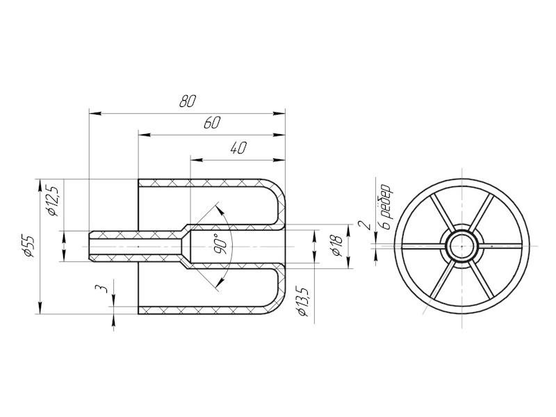 Опора мебельная стационарная h60 со штырём