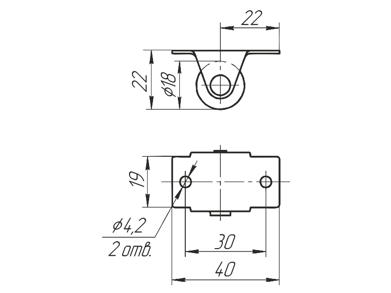 Ролик выкатной d18 с обрезиненным колесом