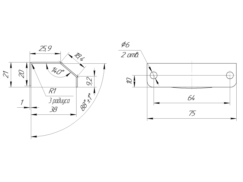 Ручка мебельная торцевая-75 черная (плита 22 мм)